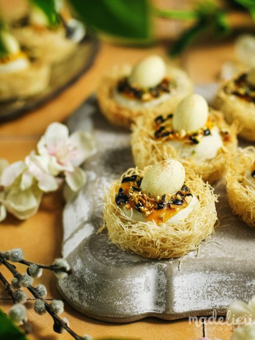 Cuiburi din kataif cu ciocolata alba, mango & fructul pasiunii