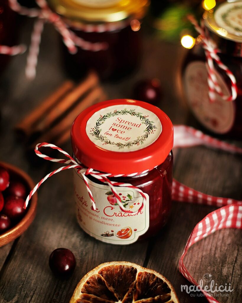 Cadourile handmade sunt intotdeauna apreciate! Daca si tie iti place sa oferi celor dragi cadouri facute de tine, atunci un borcanel cu dulceata este o idee excelenta. Ti-am pregatit o reteta de gem cu iz festiv, de sarbatoare, perfect pentru a fi daruit in perioada Craciunului. Cui nu i-ar placea sa primeasca in dar un borcanel micut si dragut cu dulceata de merisoare, mere si portocale, parfumata cu mirodenii?