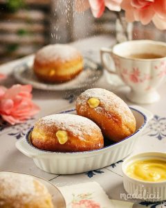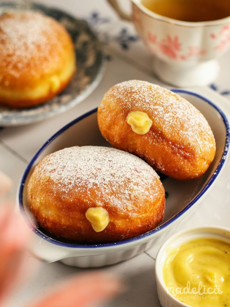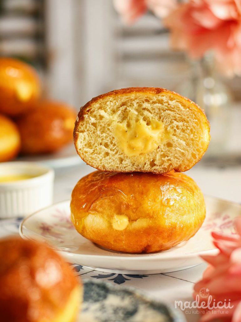 Indiferent ce alegi, aceste gogosi umplute cu crema de vanilie sunt imposibil de refuzat. La exterior sunt usor crocante, in interior raman moi si pufoase, iar crema de vanilie adauga un contrast cremos care le face irezistibile. Arata spectaculos si, sincer, creeaza dependenta. 🤤