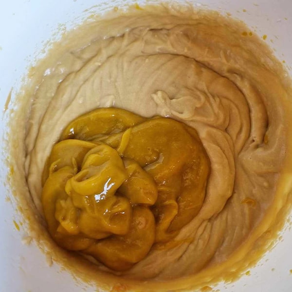 Batem laptele de cocos cu laptele condensat si piureul de mango
