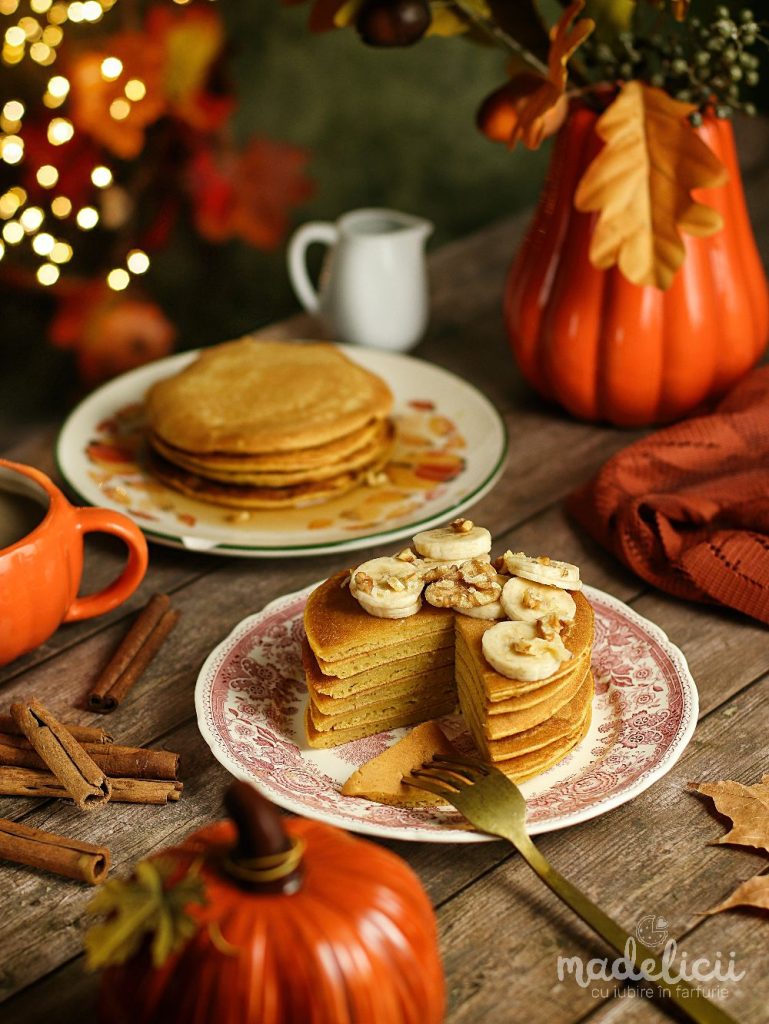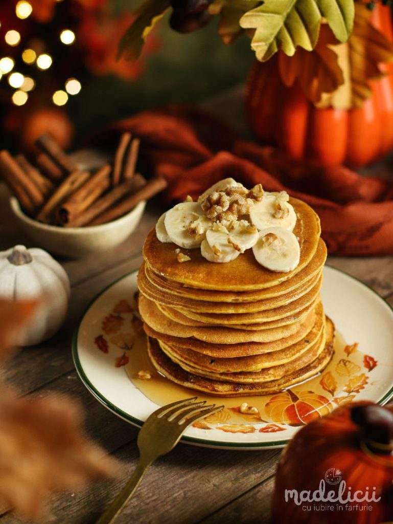 Imagineaza-ti o dimineata racoroasa de toamna. Afara frunzele ruginii cad alene, cafeaua aburinda asteapta a fi savurata, iar pe masa troneaza un teanc de pancakes cu dovleac. Mirosul de scortisoara, nucsoara si dovleac copt umple bucataria si te face sa simti ca timpul curge mai incet, doar ca sa poti savura momentul.