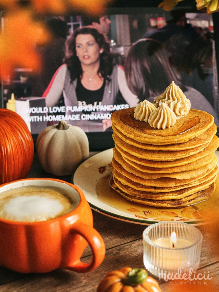 Dincolo de replicile amuzante ale fetelor, momentul a ramas iconic pentru toamna, iar clatitele cu dovleac au devenit pentru multi fani un mic dejun cozy, perfect de savurat alaturi de cafea. Asa ca, daca vrei sa aduci un strop de Stars Hollow in bucataria ta, incearca varianta de pumpkin pancakes cu cinnamon butter, exact ca la Luke’s.